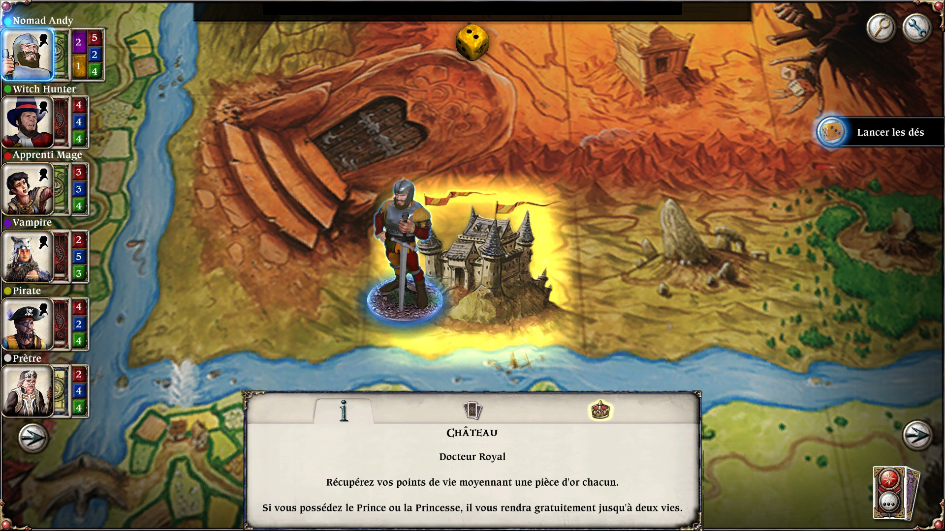 Vous commencez la partie avec une Épée du deck Achat. Si vous perdez l'Épée, vous pouvez en prendre une gratuitement dans le deck Achat si vous vous rendez au Château ou au Village.