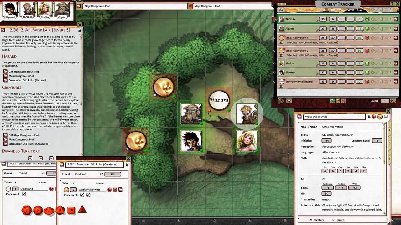 • Tokens for each encounter are all pre-placed in starting locations on the map. You can edit these on the fly.