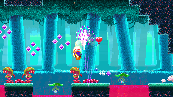 Bounce and stomp through an enormous interconnected world, doing some intense acrobatics and getting huge combos! A superfast precision platformer that mixes up a Metroidvania world with classic Arcade mechanics.