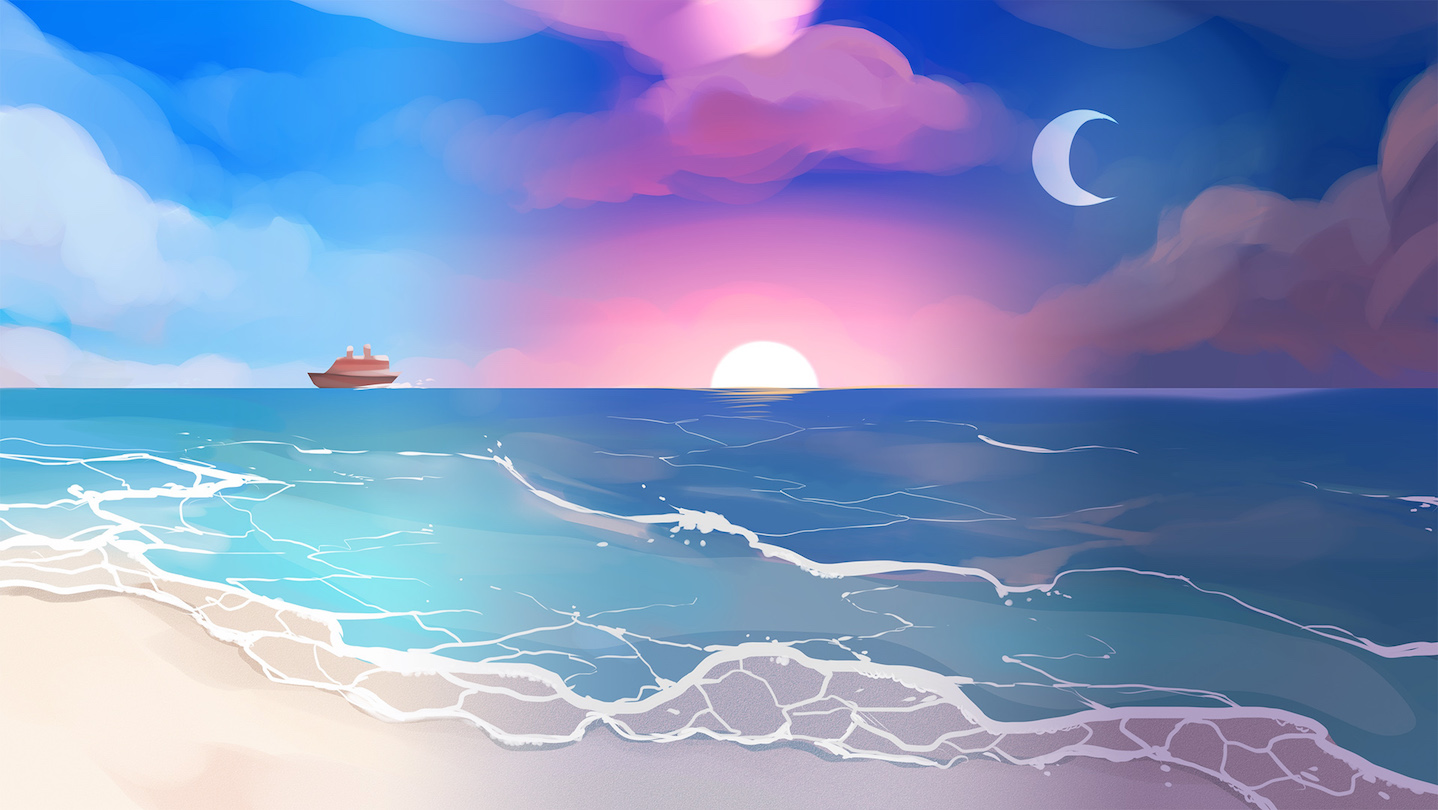 • Multiple handpainted beach backgrounds with three different times (day, sunset, night)
