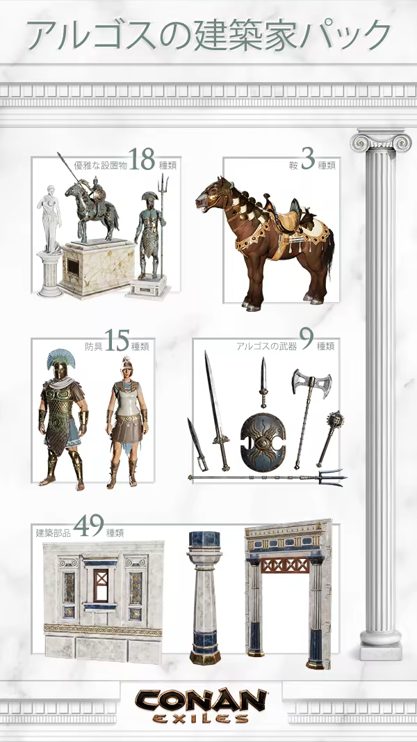 アルゴスの建築家パックで美しい都市と白く輝く大理石の神殿を築こう。優美な彫像やさわやかな噴水で飾れば、これまでにないほど印象的な拠点になる!