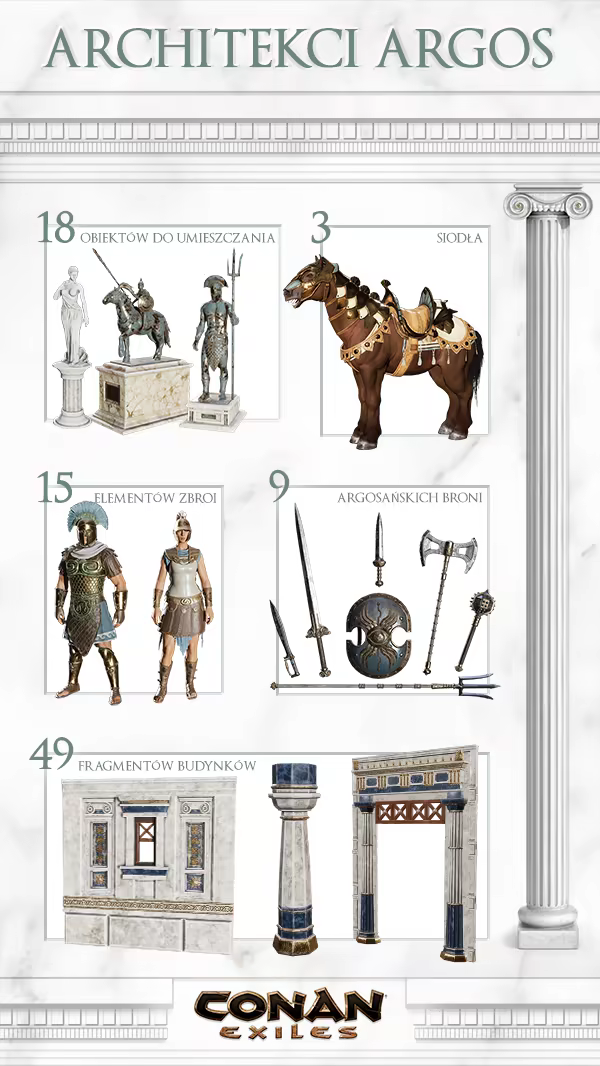 Budujcie niezwykłe miasta i imponujące świątynie z białego marmuru dzięki pakietowi Architekci Argos. Postawcie w swojej bazie ozdobne posągi i imponujące fontanny.