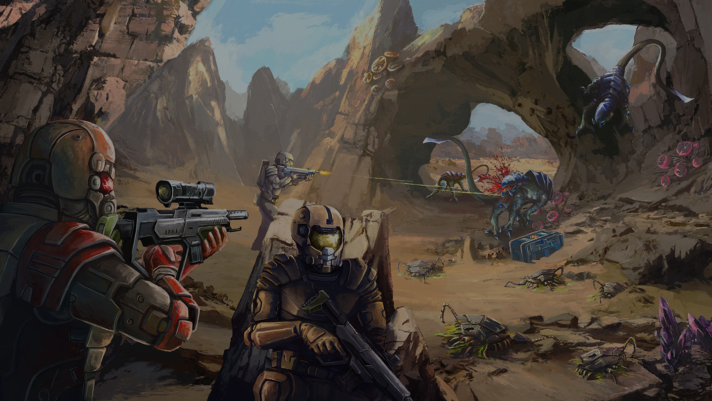 Explore the beauty and the dangers of planet Anthracite by leading your troops through 41 missions of a story-rich singleplayer campaign with about 20 hours of gameplay. Fight various enemy types including menacing local fauna, Bullets bandits, autonomous robots and well equipped ACP soldiers.