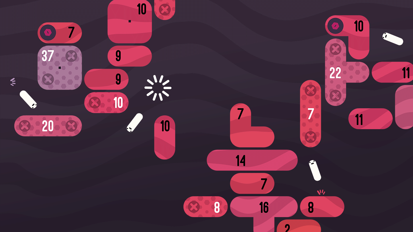 Dig deep underground by shooting balls and breaking blocks, traversing your way to the planet cores. With limited shots per round and some blocks fixed firmly to the wall, thoughtfully strategize and aim for maximum impact. Knock down as many blocks as possible while collecting crystals for upgrades and getting deeper beneath the surface.