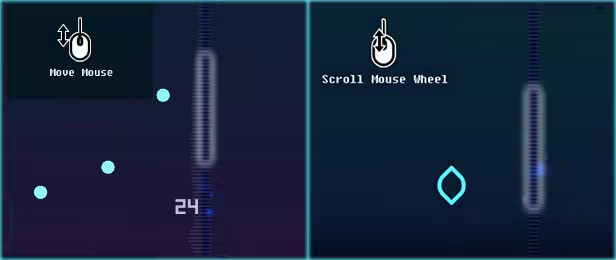 Raindrops is a stereo rhythm game, played with your mouse. Notes will be poured from both sides, and the sound will wave towards the direction of succesful hits. Move your mouse, click with both buttons, even scroll to take care of these notes.