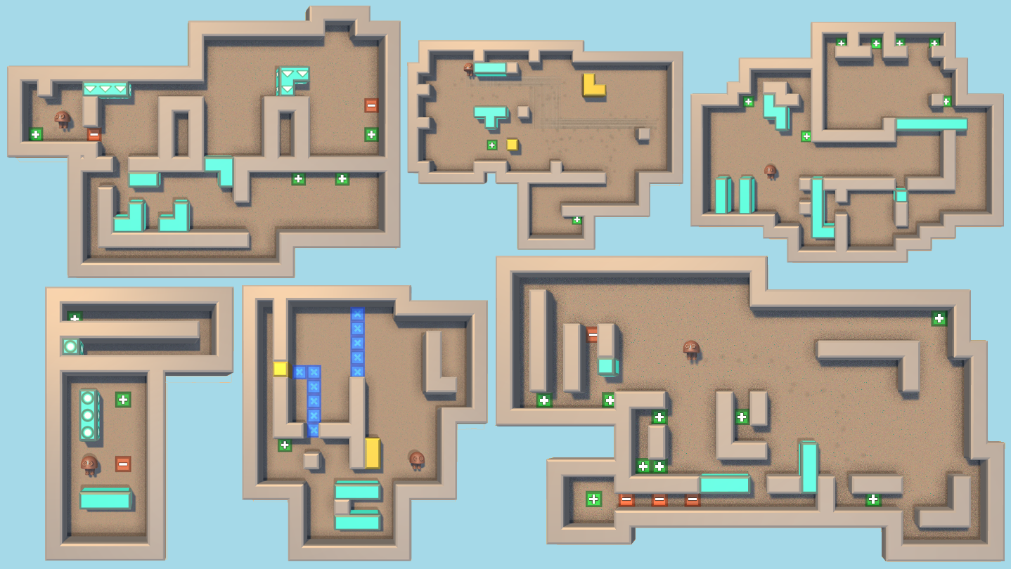 Challenging block-pushing puzzles.