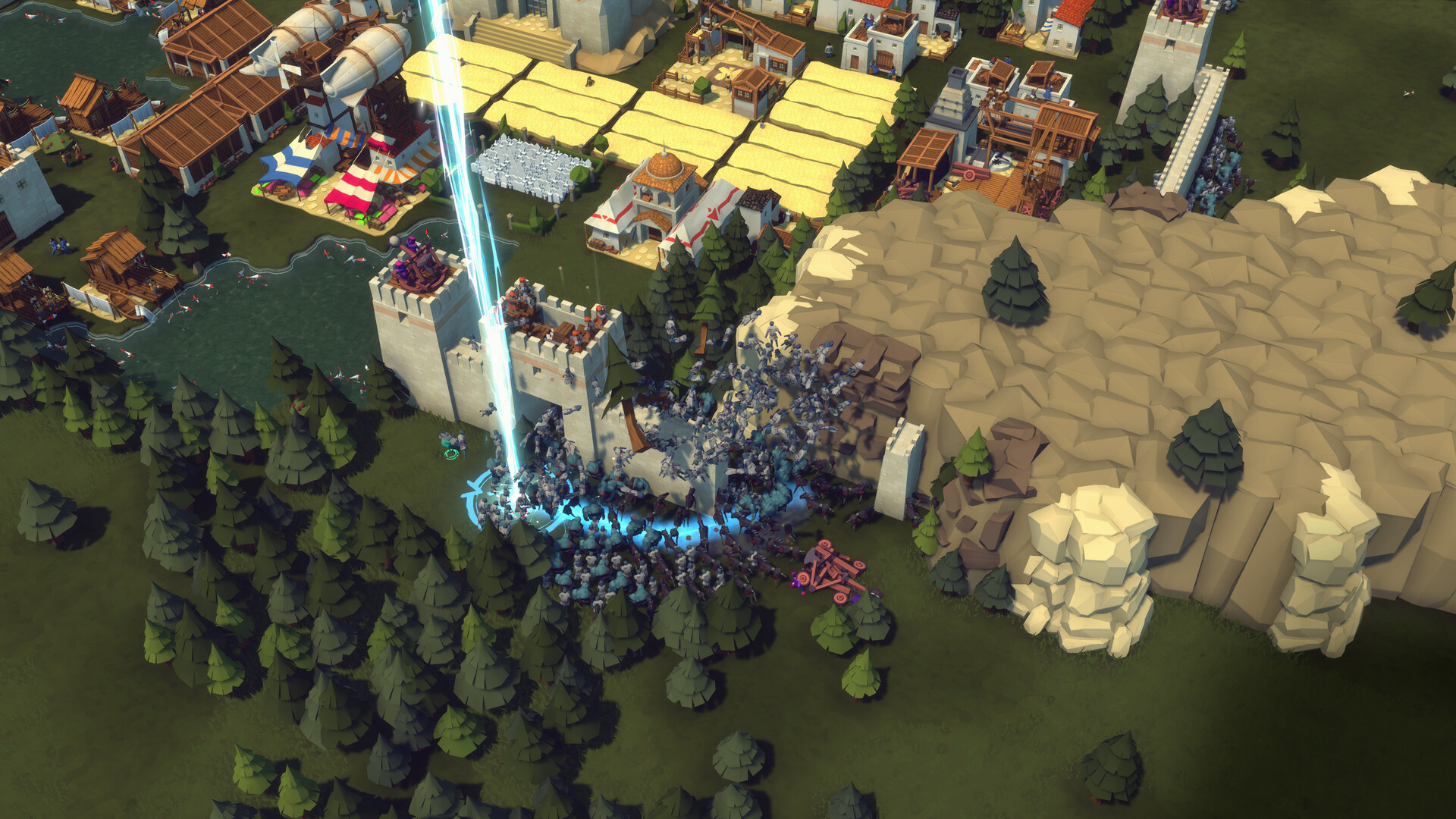 If life gives you lemons, make lemonade. If you’ve inherited a cursed kingdom, why not master the dark arts? Sturdy castle walls will protect you from most ordinary threats, but in Diplomacy Is Not An Option you're also be battling undeads. So why give them a monopoly on magic? There is a dark history of tainted power that stirs the dead and traps wayward souls. On the lighter side: it can also be used to call down really very big fireballs onto your enemies. So enjoy that too. Build magical monuments, harvest soul crystals and give a try to a maniacal laugh as searing magical beams tear through your foes and summoned ghosts to chase down the stragglers.