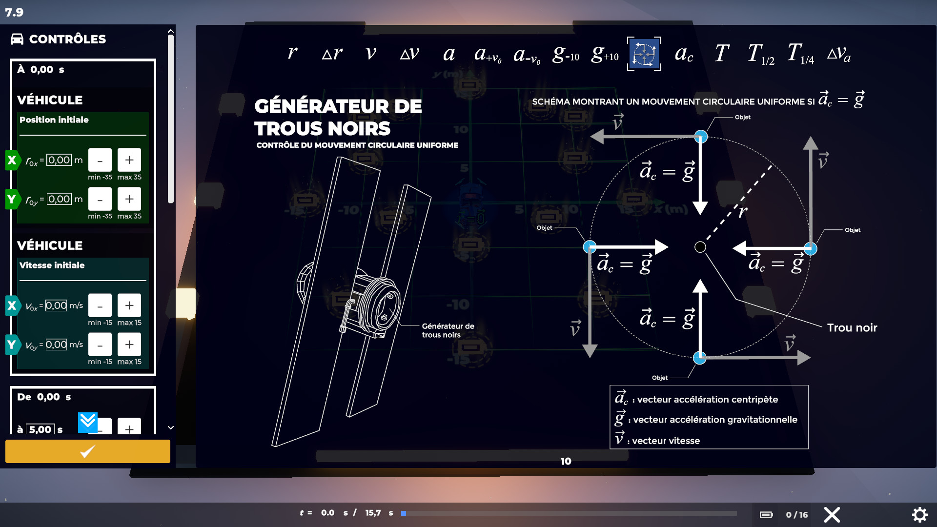 Avec ce jeu créé par un enseignant de physique, la physique et les puzzles sont intimement liés! Chaque monde du jeu couvre un concept de physique différent, comme la position, la vitesse, l'accélération, etc. Vous pourrez mettre à l'épreuve vos habiletés en cinématique en utilisant :