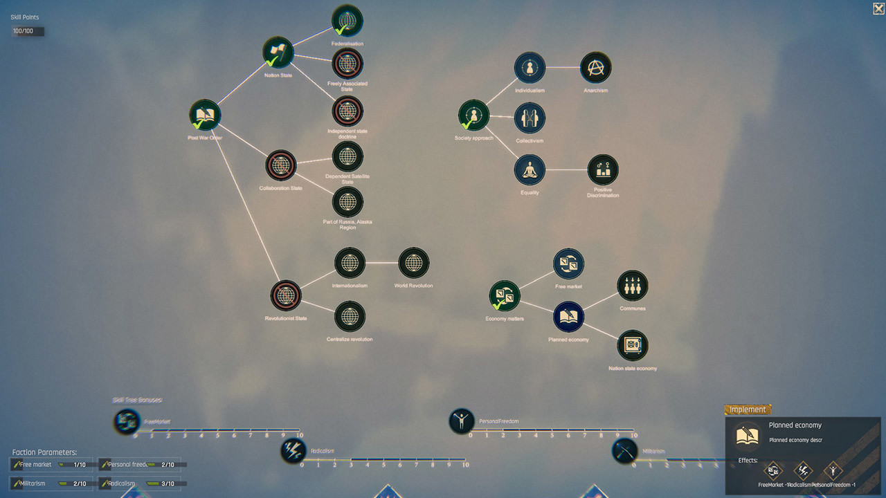 Shape your own politics, handle diplomatic relations with other factions and settlements.