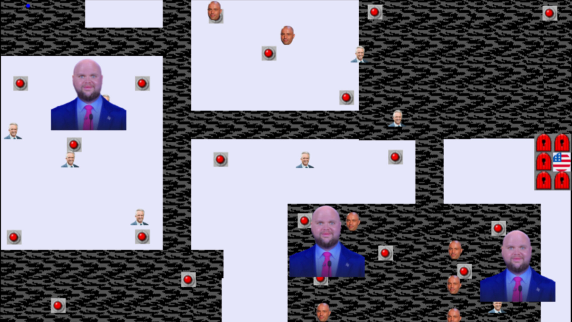 Play as the tiny yet tenacious Democrat as you avoid the Orange King's sycophants and loyalists to defeat the True Evil and restore the republic. Using only the ability to move, you must time your movements well and think quickly in order to make it through all 20 levels, each harder than the last!