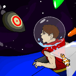 Suddenly a rather annoying alarm in your spaceship starts to emmit a blasting sound and red lights. You put on your fish bowl space helmet and gaze through the main cargo door and in a gasp of horror... oh no!... you are surrounded by missiles that are coming straight at you!