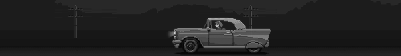 • Atmospheric black and white pixel art, inspired on horror and mystery shows from the 60's like The Twilight Zone and The Outer Limits.