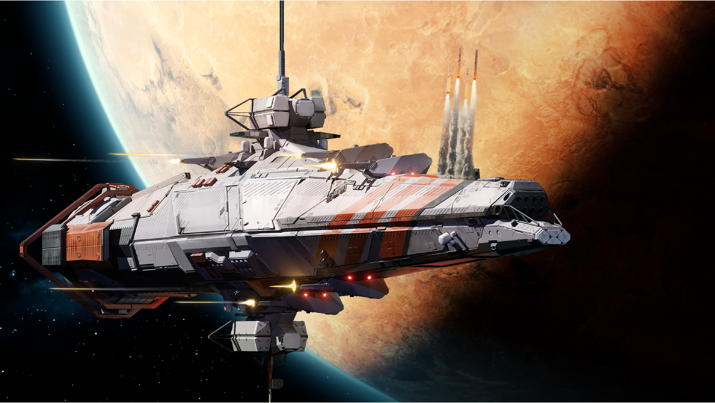 Explore a vast procedurally generated star system filled with planets, moons, asteroid fields, and nebulae. Build and upgrade shipyards, supply depots, refineries, and recon stations as you research new technologies to unlock ship hulls, weapons, orbital facilities, colonization options, and more.