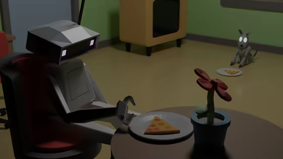Little robots have stories. Follow a little robot as it explores the city, makes friends, and has fun... and pizza. Little robots like pizza.