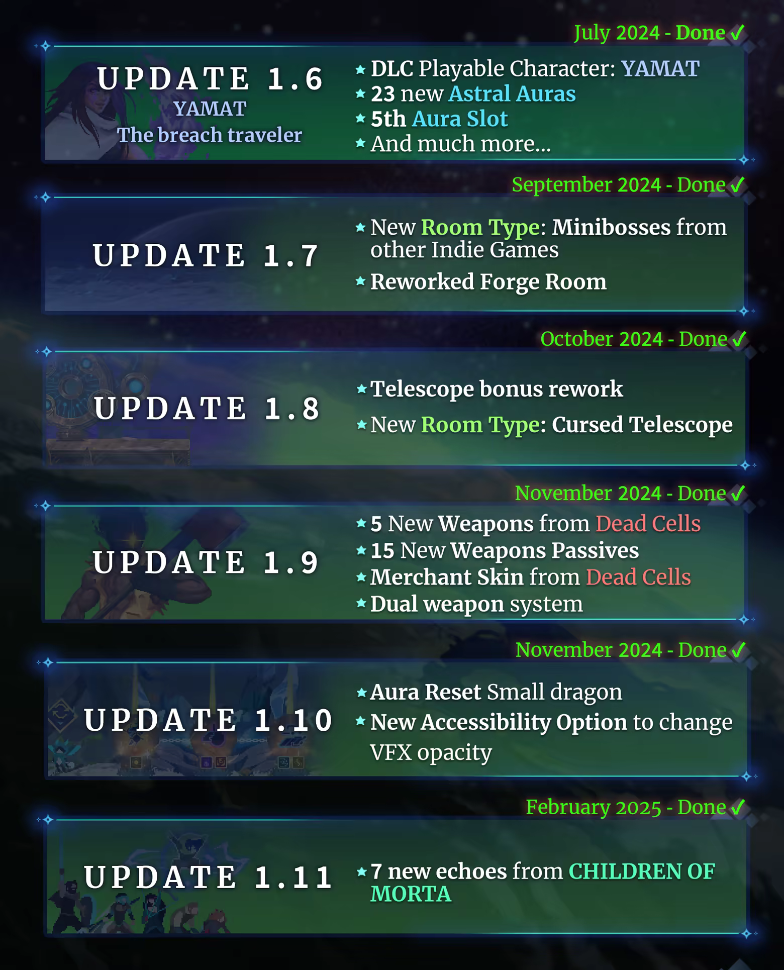 Astral Ascent is a 2D platformer roguelite game set in a modern fantasy world. As one of 4 Heroes with very different personalities, you must escape from The Garden, an astral prison guarded by 12 powerful and vicious bosses, the Zodiacs.