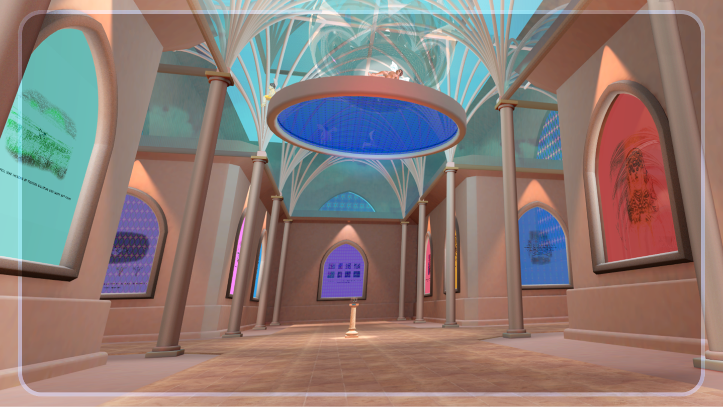 Virtual world that reenacts through interactive animations the content painted by Andrea Mantegna in the Saint Giorgio Castle in Mantua, Italy. Virtual Reality interactive animated environment. For artists and scholars.