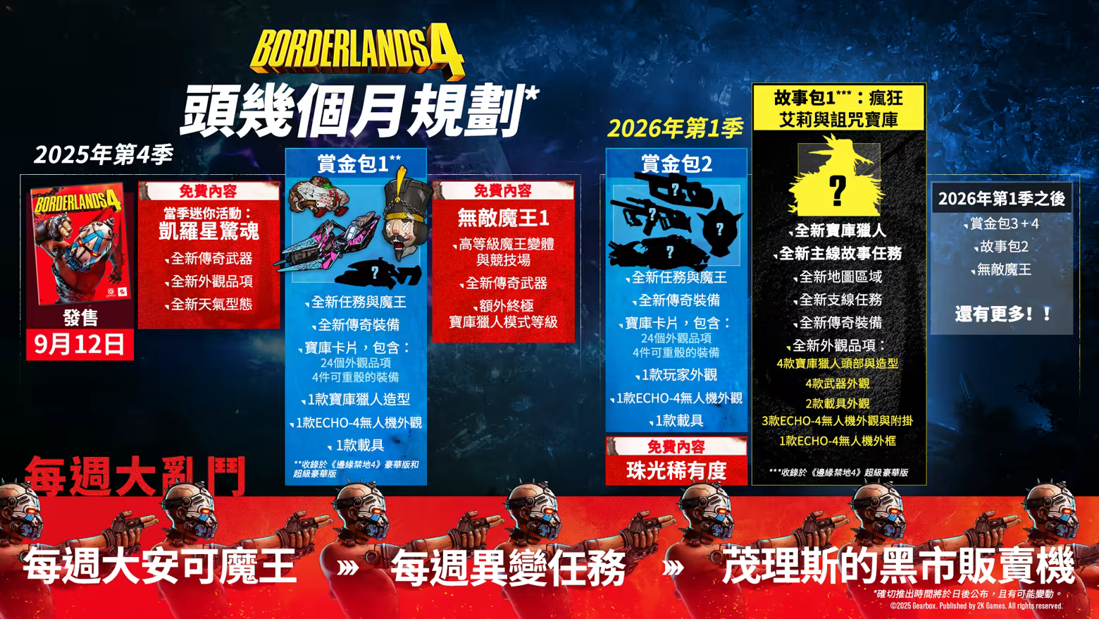 《邊緣禁地4》帶來緊張刺激的動作場面、個個都是狠角色的寶庫獵人,以及數十億把瘋狂致命武器,讓玩家闖蕩由冷血暴君統治的全新星球。