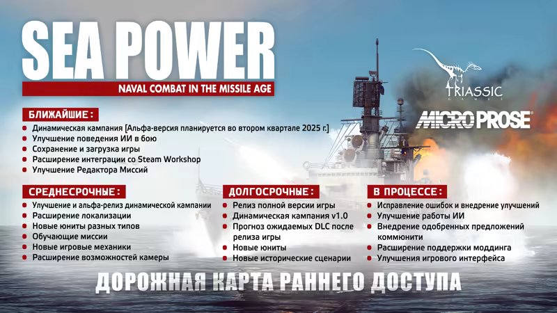 Ниже Вы можете ознакомиться с текущим планом развития игры Sea Power в период раннего доступа.