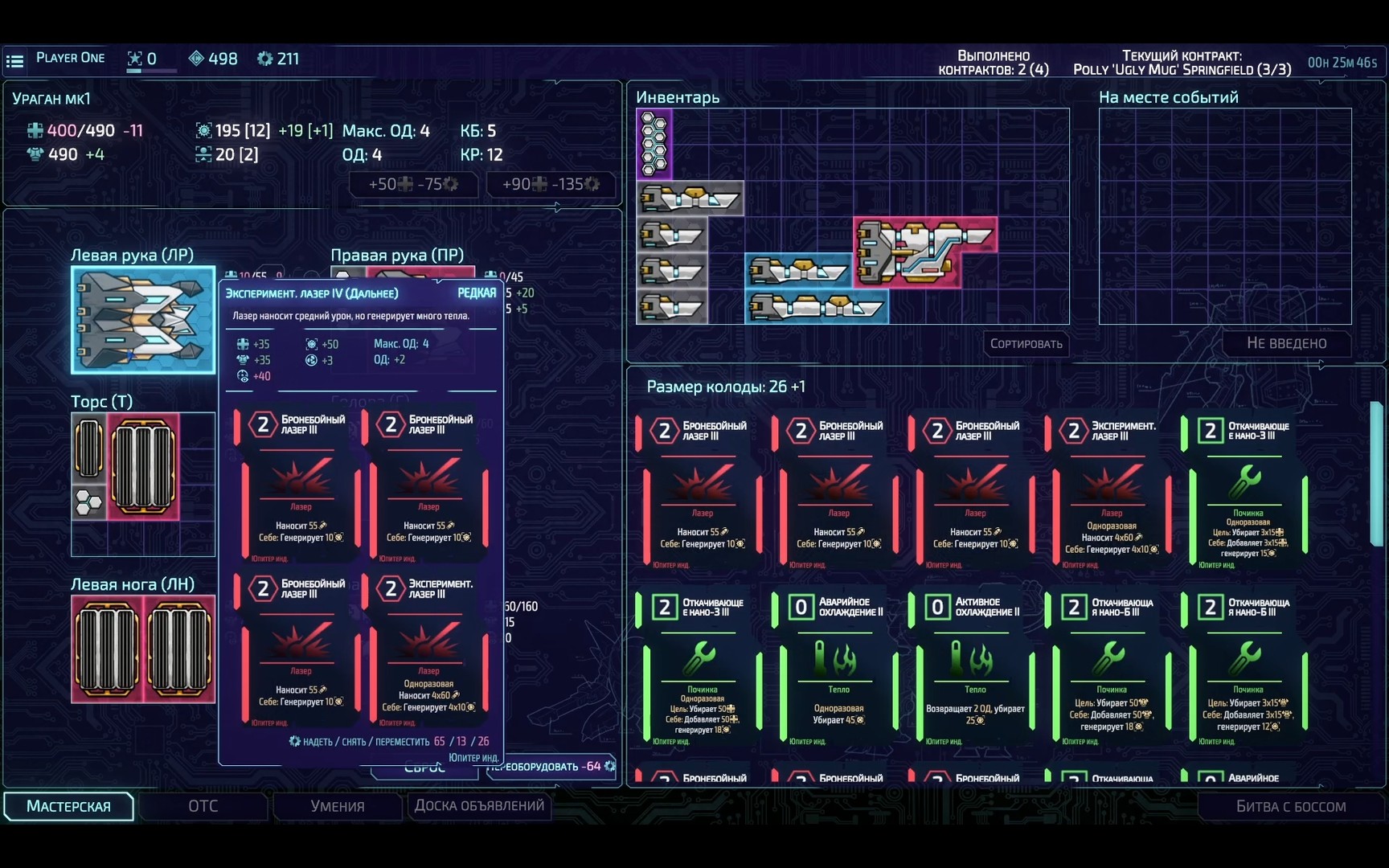 Каждая часть тела мехи имеет свою броню и здоровье. Сбалансируйте оборудование так, чтобы ваша колода была эффективной и обеспечивала достаточную защиту. Когда часть тела разрушается, использовать прикрепленные к ней карты больше нельзя!