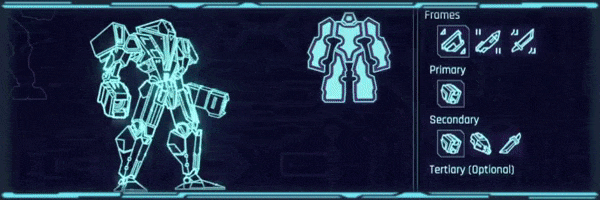 Choose your Mech frame. Every pilot approaches combat differently, choosing from the melee-oriented assault frame, the stealth sniper frame, or just opt-in for raw laser firepower. Mech frames can be upgraded during the game: by installing new equipment and upgrading the frame to a newer variant.