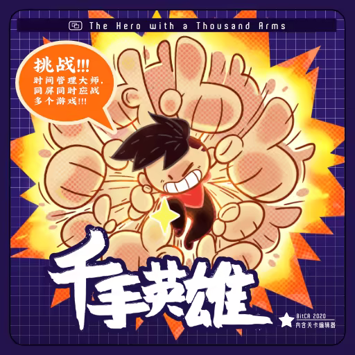千手英雄创造的是一种挑战:同屏放置若干处于运行状态的小游戏,玩家需要切换选择一个游戏进行操作,而其它游戏则会进入子弹时间。