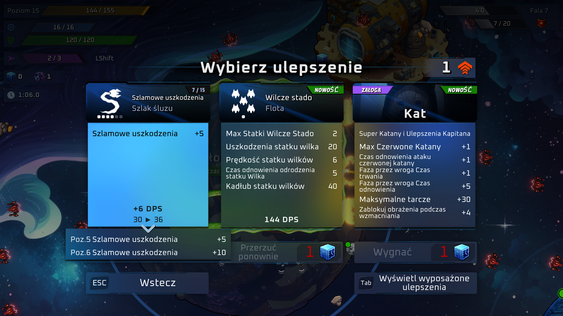 • Szybkie poruszanie się statkiem z ulepszeniami wspomagającymi