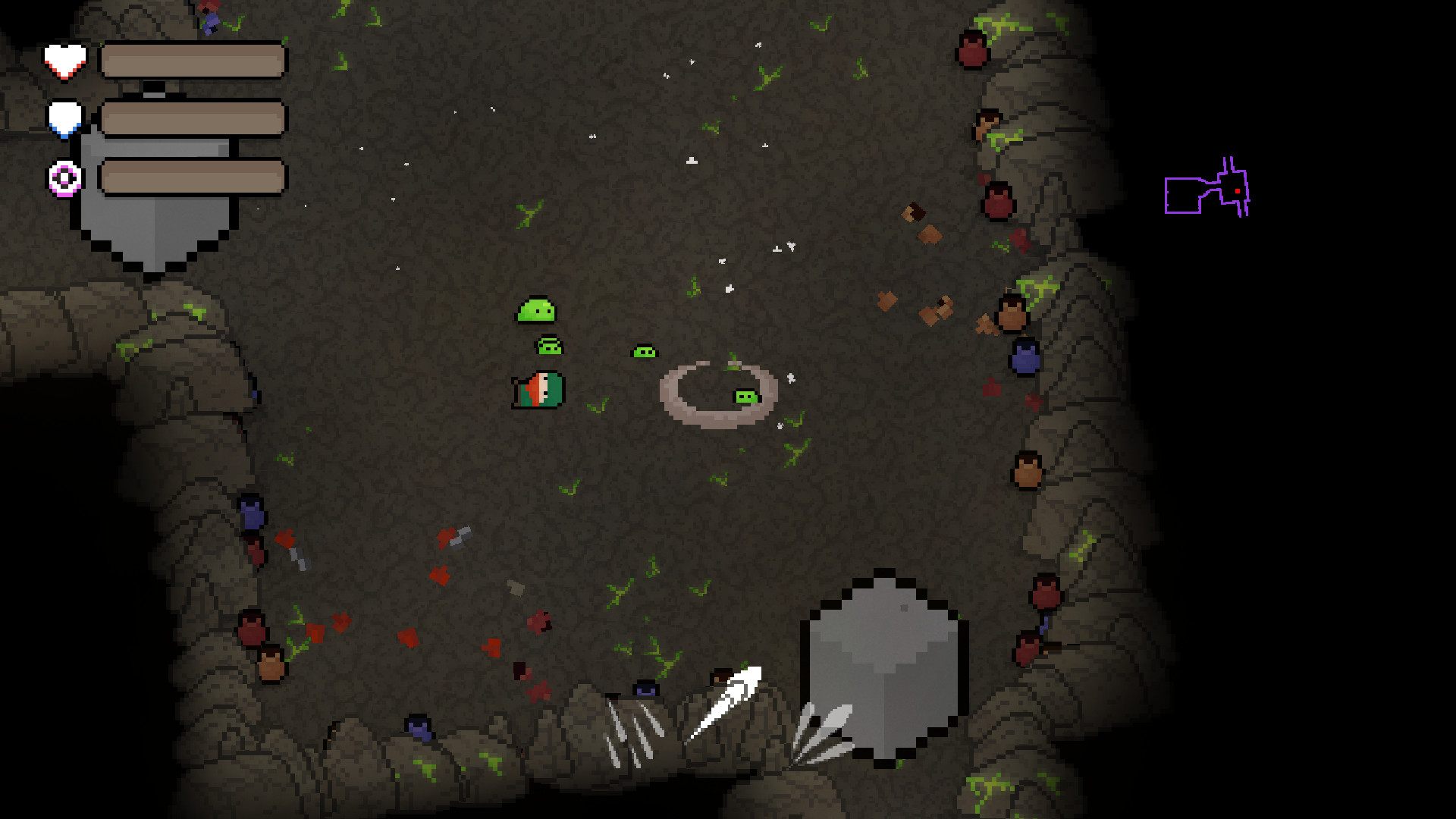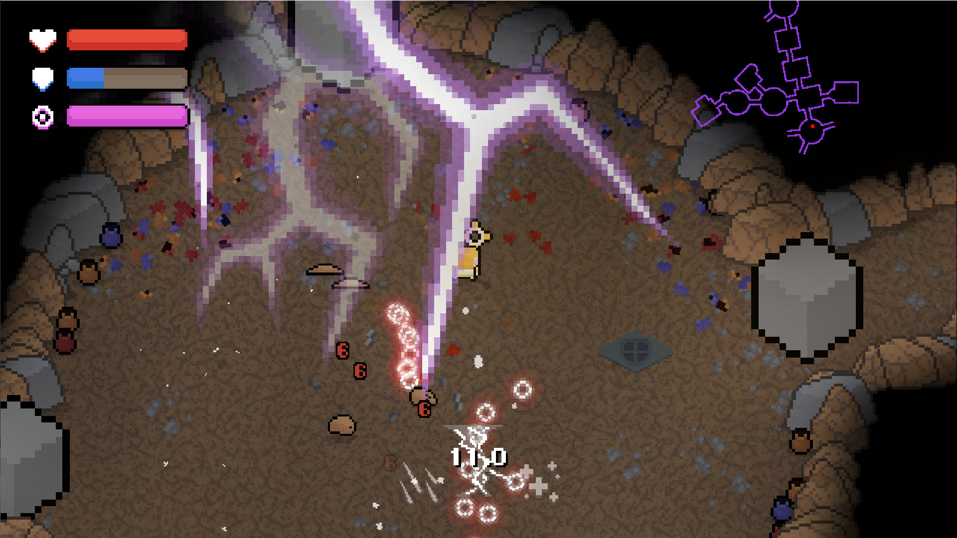 • Xplore 3 stages of challenging procedurally generated dungeons with different enemies and shrines.