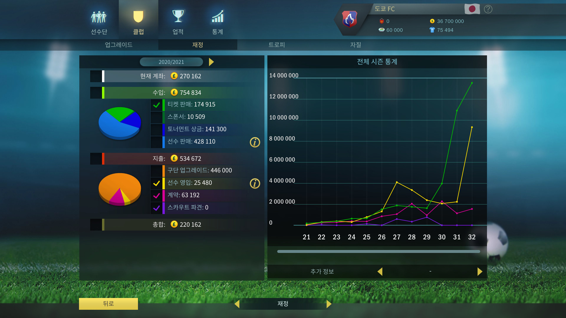 • 팬 메커니즘이 재설계되었습니다. 이제 80,000명 이상의 팬을 모을 수 있습니다. 클럽의 팬이 많을수록 스폰서가 더 많은 금액을 지불하려고 합니다.