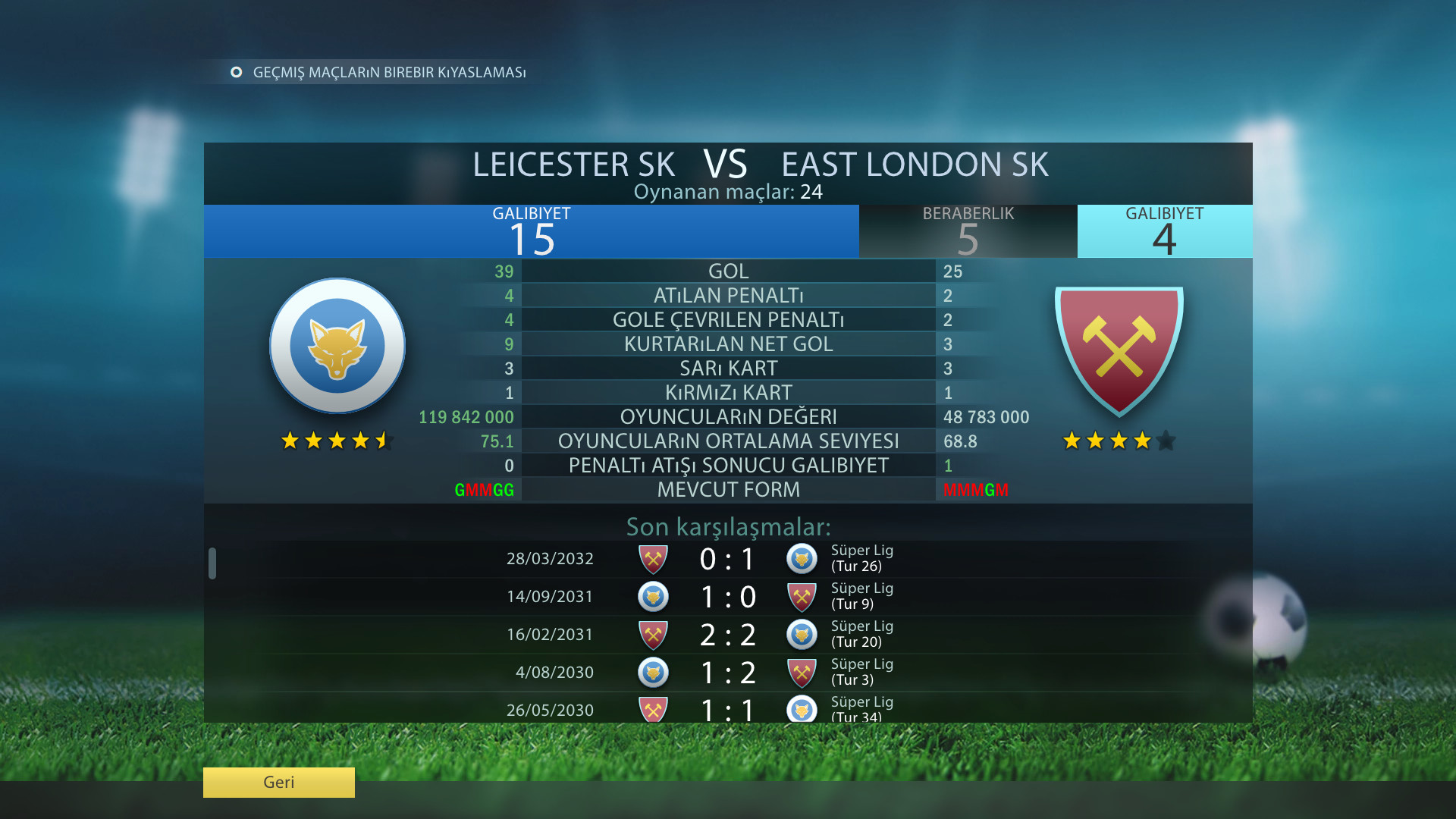 Önceki ve güncel sezonlardan çeşitli istatistikler artık kaydediliyor ve analiz ediliyor. Kulübünüzün geçmiş ihtişamıyla kendinizi şımartabilir ve birçok grafik, çizelge ve istatistiksel özetler aracılığıyla daha iyi gelecek taktikleri benimseyebilirsiniz!