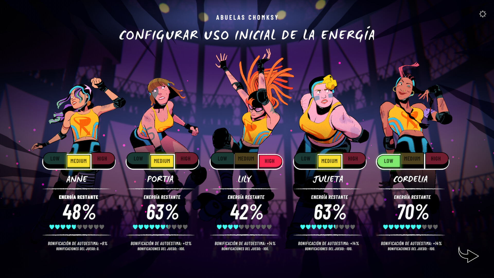 Aviso: Esto no es un simulador de roller derby. Las mecánicas de los partidos están inspiradas en el roller derby, pero hemos creado nuestra propia versión.