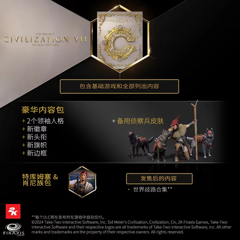 *需要互联网连接,以及与游玩《席德·梅尔的文明VII》的平台账号绑定的2K账号。2K账号免费注册。每个用户可注册一个2K账号。奖励将在游戏中自动发放。禁止地区无效。条款适用。