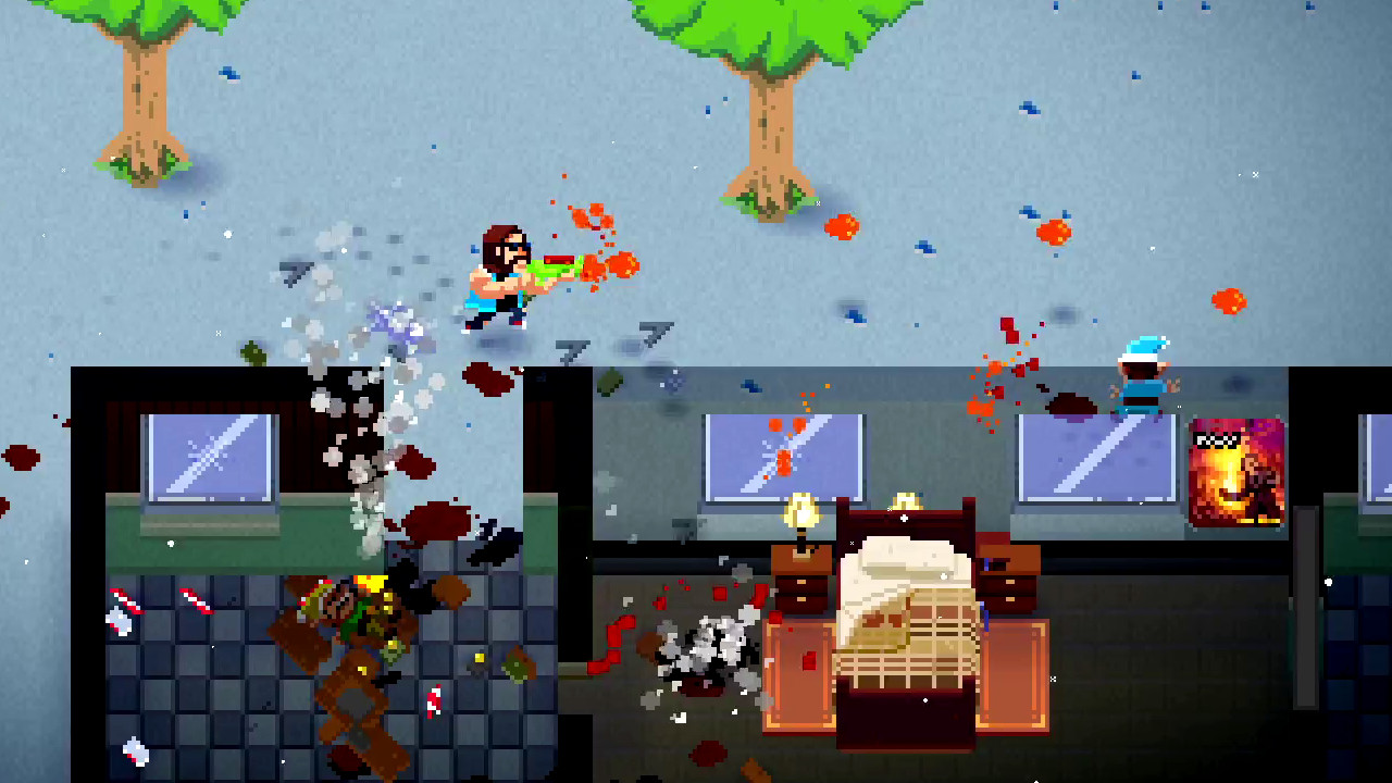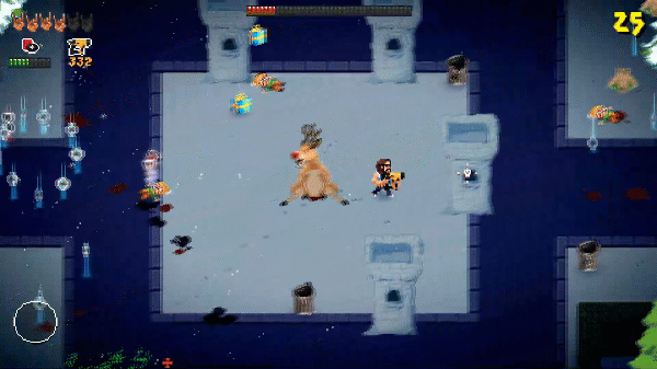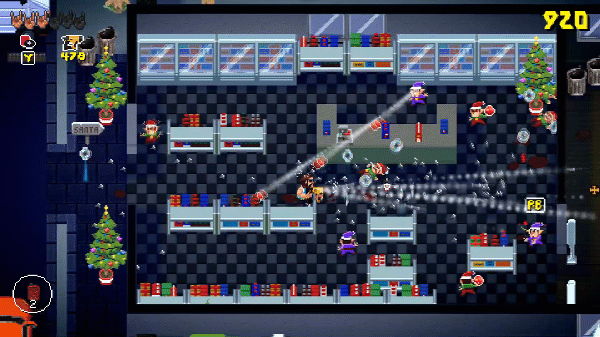 • Twin-stickroguelite action: Defend humanity's right not to celebrate Christmas.