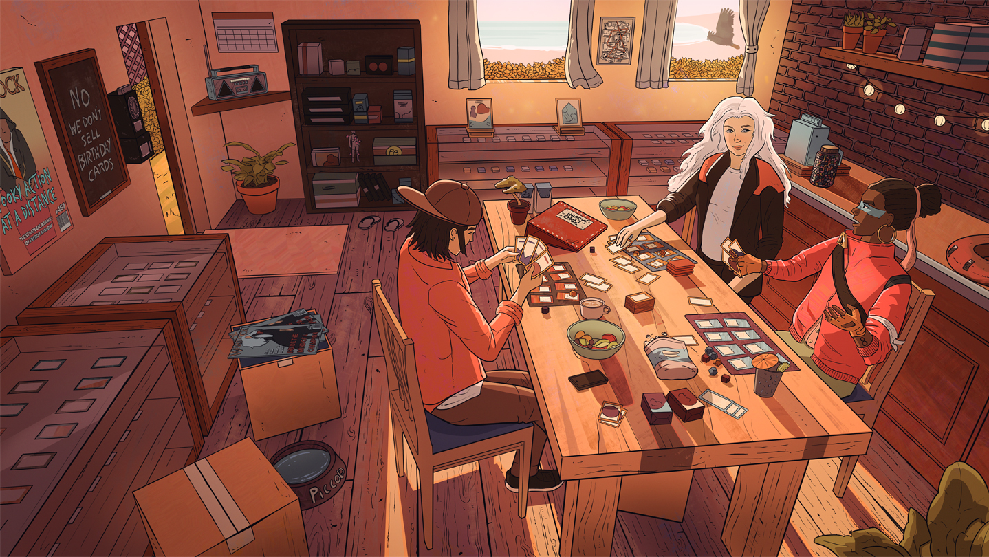 Your guide, Giuseppe, a fast-talking Cockatoo, helps you in your buying and selling journey - picking up a foil Startled Banana on the cheap and turning it around for a power rare performing great at tournaments. Host booster drafts, clearance sales, in-house tournaments, and release parties for new sets in the game, making sure that your customers have every card they need to be the best duelist in town.