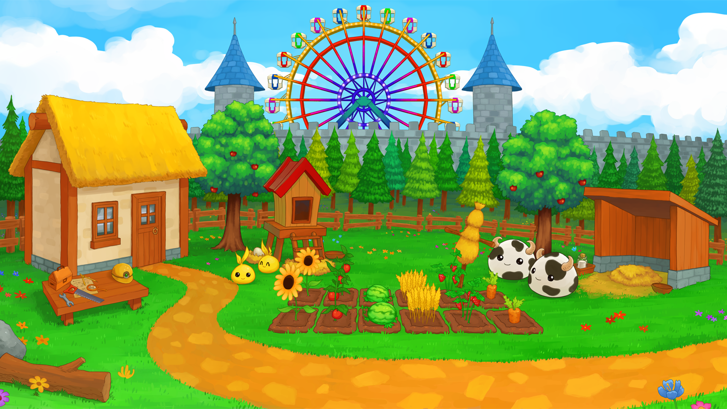 • 🥕 Grow a wide variety of crops and fruit trees on your farm, and decorate it to your liking!