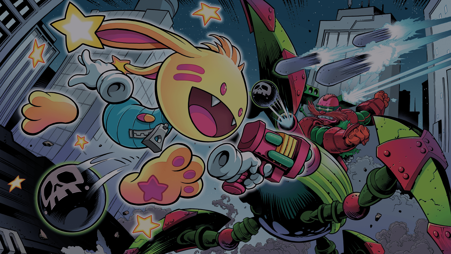 Spectacular Sparky is an action-packed platform/shooter with wacky characters, explosive weapons and boss battles to treasure. Sparky is an adorably insane intergalactic bounty hunter who can dash through obstacles, fire his weapons in any direction and even extend his jumps by flapping his long space-rabbit ears. Each time he brings down a boss, his connected confidante Shigg (half shark, half pig) is ready to point him in the direction of yet another space fugitive.