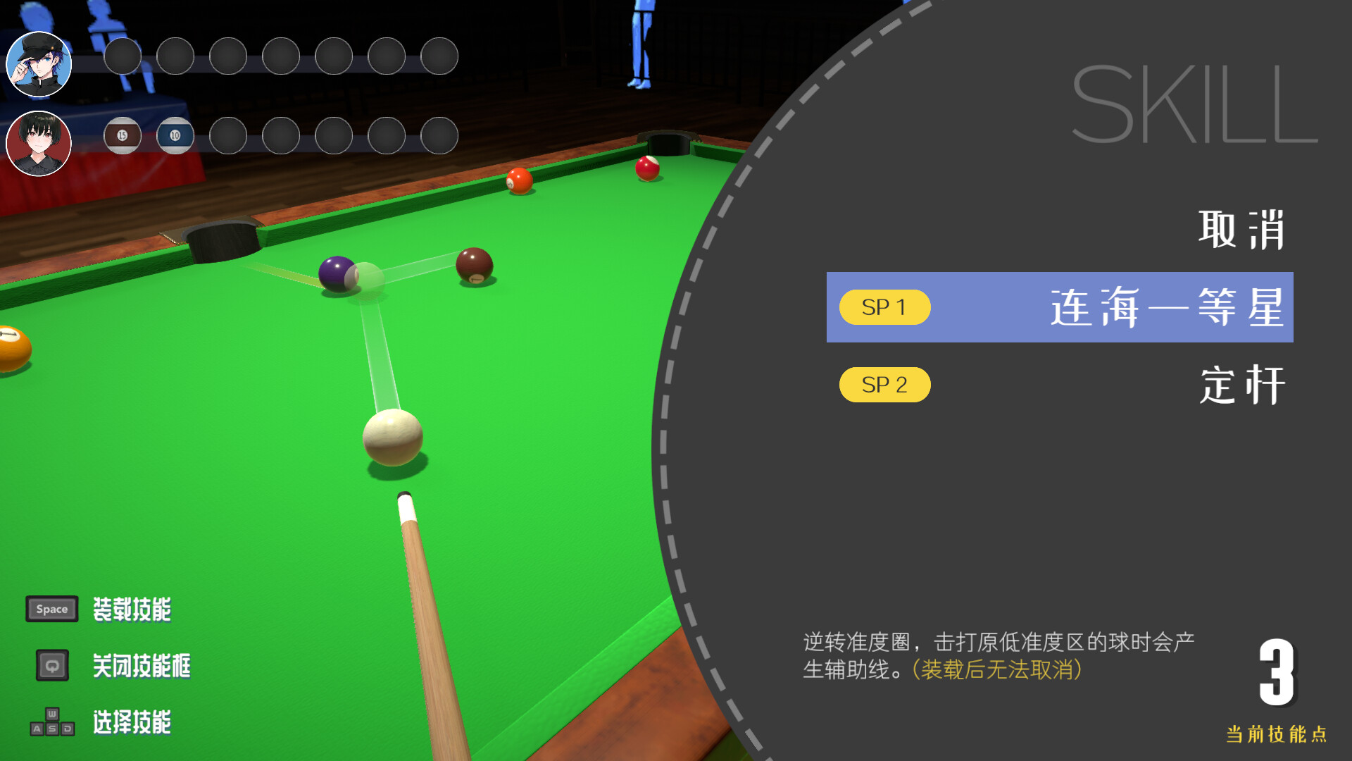 随着与伙伴们羁绊的加深,可以获得在台球比赛中使用的特殊技能。