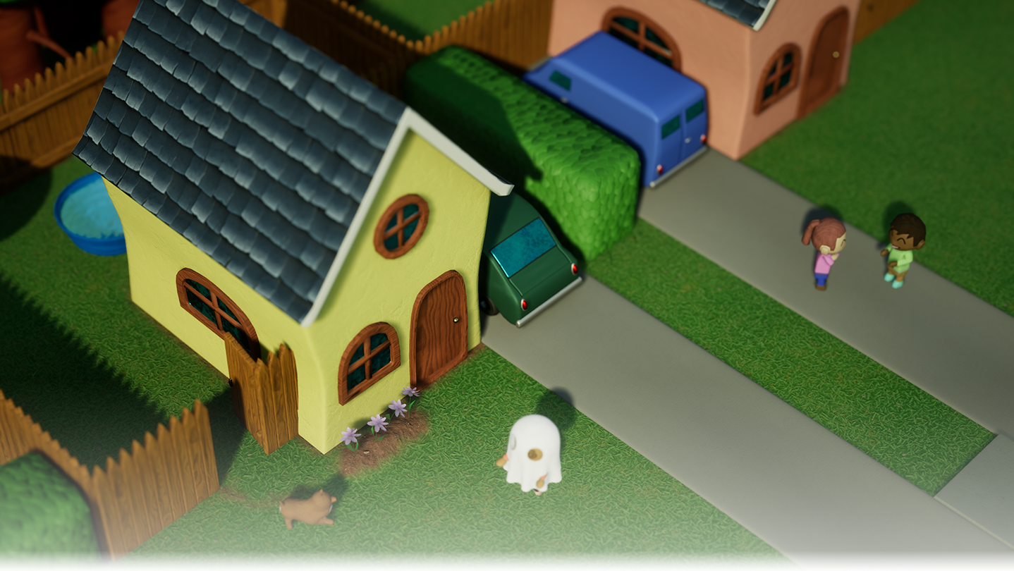 You play as a lonely ghost with the power to possess the living. Surrounded by Oomans who cannot see you, you must use this power to steer them into comically fatal accidents and an early friendship, freeing the friendly ghosts within them. Each level is a puzzle diorama, styled after classic children's stop-motion cartoons, where you have to figure out how to make all the friends using the available hazards.