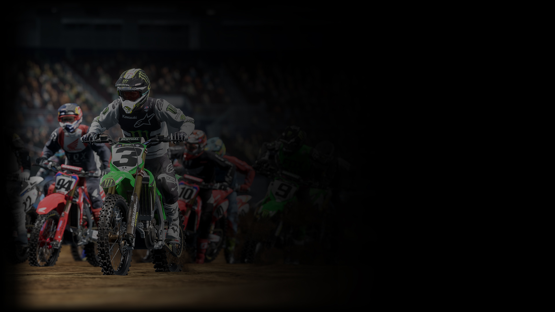 Valitse 450SX- ja 250SX-luokkien suosikkikuskisi yli 100 vaihtoehdon joukosta. Kisaa kauden aikana 11 stadionilla ja 17 radalla.