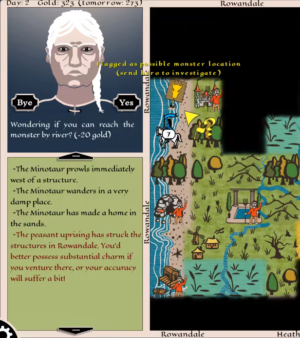Can you find and defeat five legendary monsters in twenty days? Plan your moves carefully – the lair may be right in those woods! Buy rumours, hire adventurers, explore the map, and win tactical combats. A compact strategy with an old-school look and a puzzle twist!