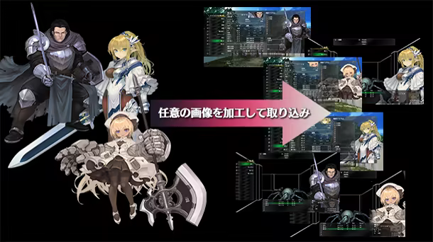 フルHD向けUIモード2種は、カスタムポートレートに対応。オリジナル版『五つの試練』では正方形の顔画像1枚しか使えなかったところ、カスタムポートレート機能を使えば、横長のより広い顔画像だけでなく、戦闘時やステータス画面用にそれぞれ大判の立ち絵を用意することができる。