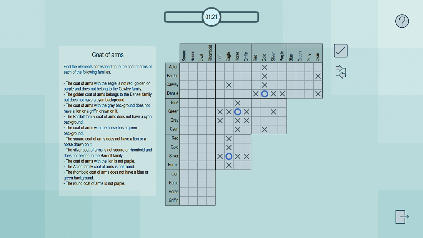 logiCally is a game designed to test the skills of logic, observation and mental calculation.