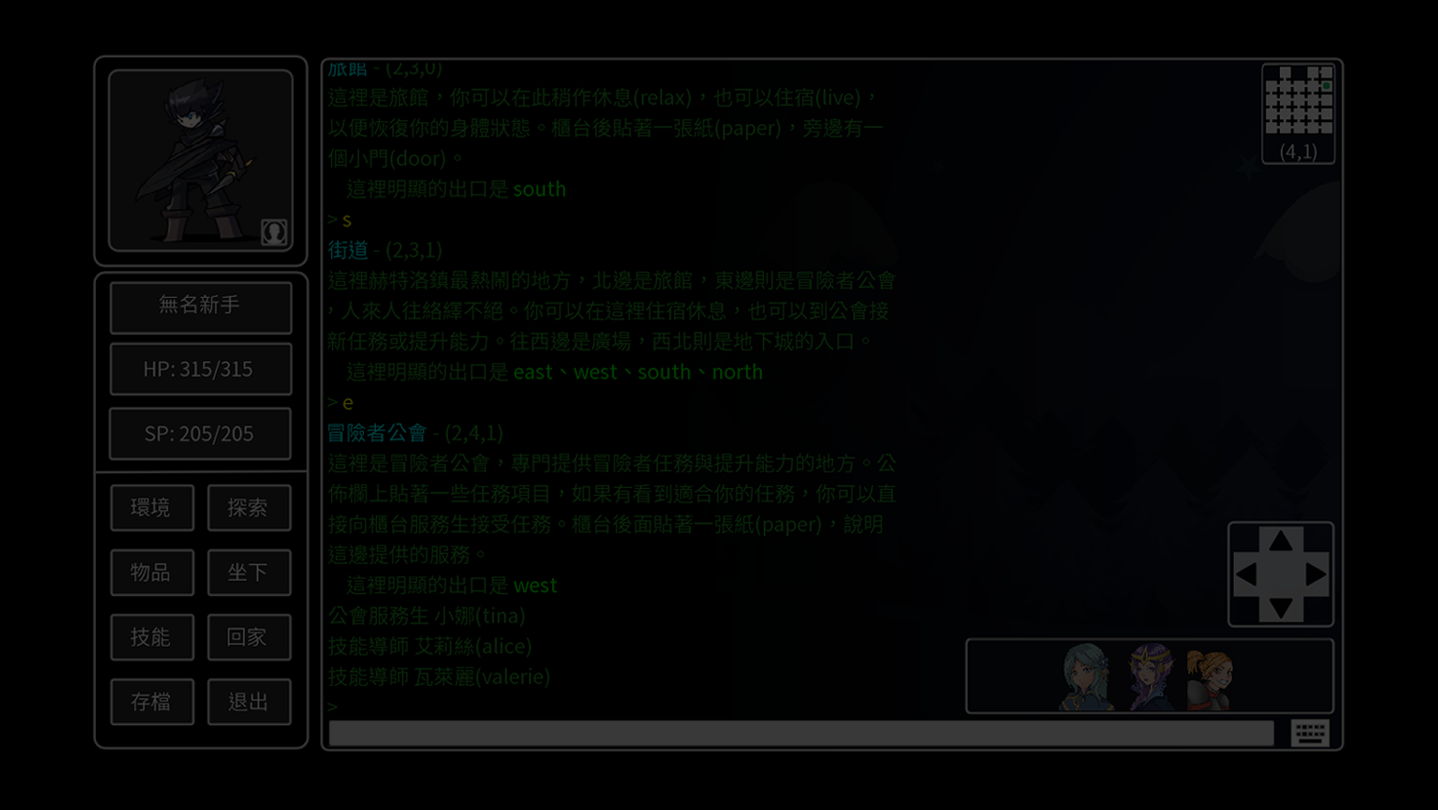 In addition, in order not to lose the traditional Mud feeling, but also hope that people who play Mud for the first time will not be discouraged by the complicated command play mode, so I try my best to use the keyboard to enter the game mode, Change to just use the mouse to click,