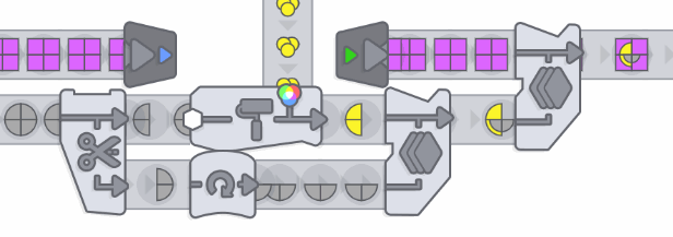 And as if that wasn't enough, you also have to produce exponentially more to satisfy the demands - the only thing that helps is scaling! While you only have to process shapes at the beginning, you will later have to color them - by extracting and mixing colors!