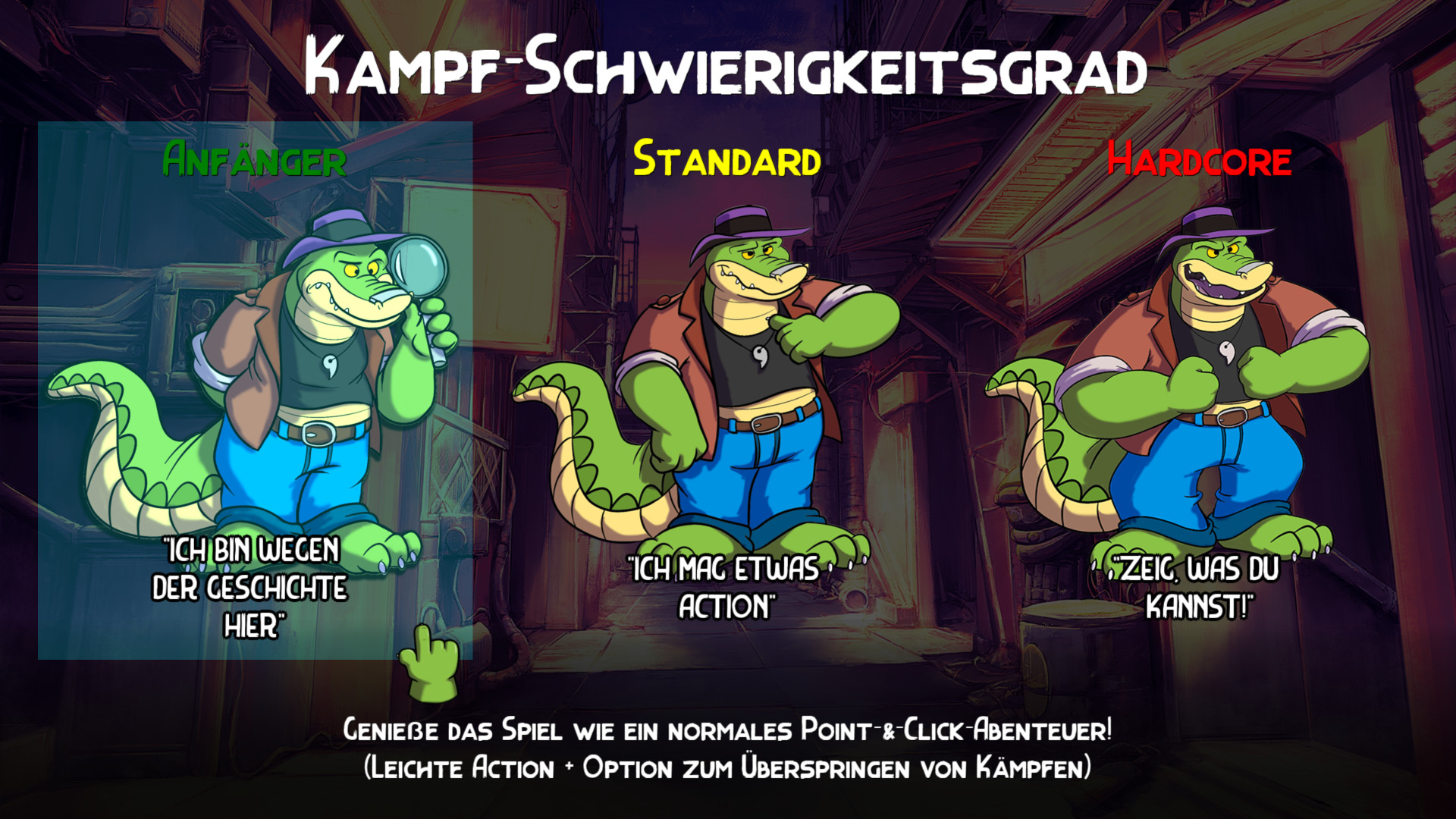 • Einfacher Modus für ein reines „Point-and-Click“-Spiel (Kämpfe können übersprungen werden)