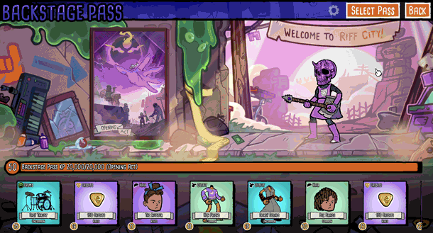 As you play Battle Bands you'll earn Backstage Pass exp and unlock tons of new cosmetics, as well as bonus Tokens to use in Joe's Variety Shop. All passes are 100% free and players are able to switch to any pass at any time.