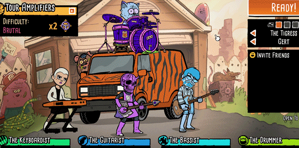 Grab your gear, your bandmates, and set out for greatness. Customize everything from instruments to wardrobe and come up with a wicked band name.