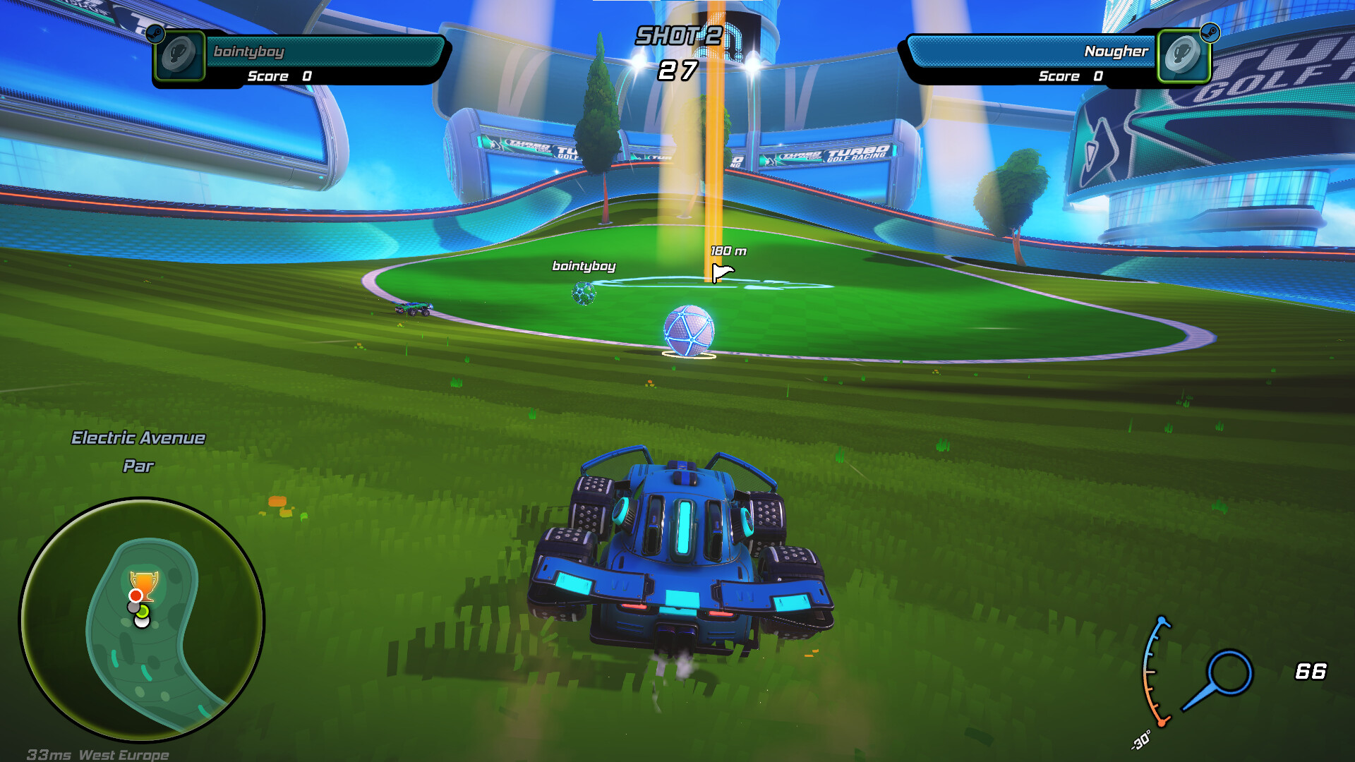 “Currently, multiple core features have been implemented, including casual and ranked modes, time trials and timed events. Turbo Golf Racing contains plenty of content with over 300 cosmetics, 70 levels, 15 customisable abilities, 100 missions and 5 pick-ups.”