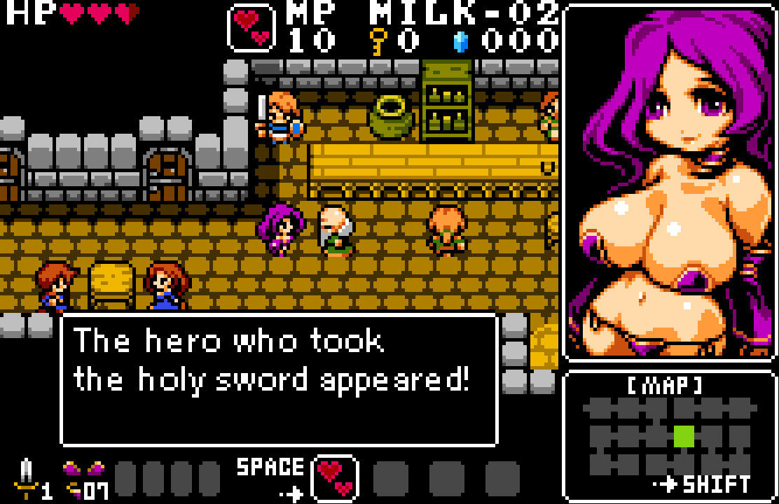 Have sex with villagers, be a "lady of the night", fuck monsters and satisfy yourself with hand-drawn erotic pixel art animations! Will you be able to find all the events?
