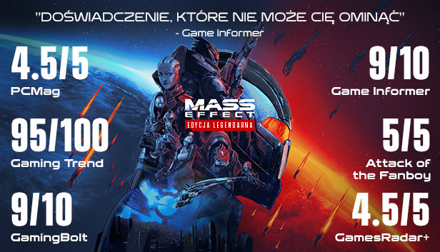• Trzy gry – jeden program uruchamiający: zagraj w zawartość jednoosobową wszystkich trzech gier z trylogii Mass Effect – w tym w ponad 40 DLC – i korzystaj z promocyjnego uzbrojenia, pancerzy i pakietów.