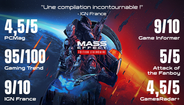 Mass Effect™ Édition Légendaire inclut le contenu solo de base pour les trois titres (Mass Effect, Mass Effect 2 et Mass Effect 3), ainsi que vos contenus téléchargeables d'histoire solo préférés, des armes, armures et packs promotionnels :